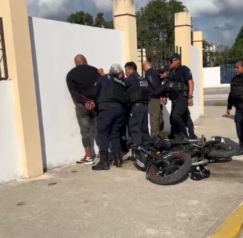 De acuerdo con información, elementos de la Policía de Cancún observaron a los sujetos junto a una motocicleta en una aparente operación de compra-venta de narcóticos. Al aproximarse, los individuos emprendieron la fuga, lo que derivó en la activación del protocolo de seguridad conocido como “código rojo”.