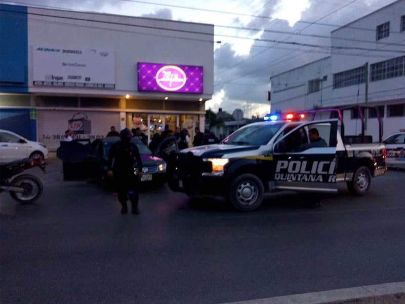 Persecución y balacera en la avenida Kabah; policías detienen a una pareja de un auto compacto, al parecer huían de un atentado por parte de sicarios.