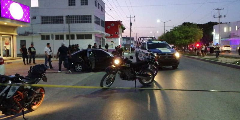 Persecución y balacera en la avenida Kabah; policías detienen a una pareja de un auto compacto, al parecer huían de un atentado por parte de sicarios.