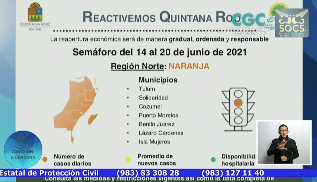 Pese a récord de 274 contagios de covid-19, Quintana Roo seguirá en naranja. Según la actualización del Semáforo de Riesgo Epidemiológico en el estado, que realiza cada jueves el gobernador del estado, la entidad permanecerá en color naranja una semana más.