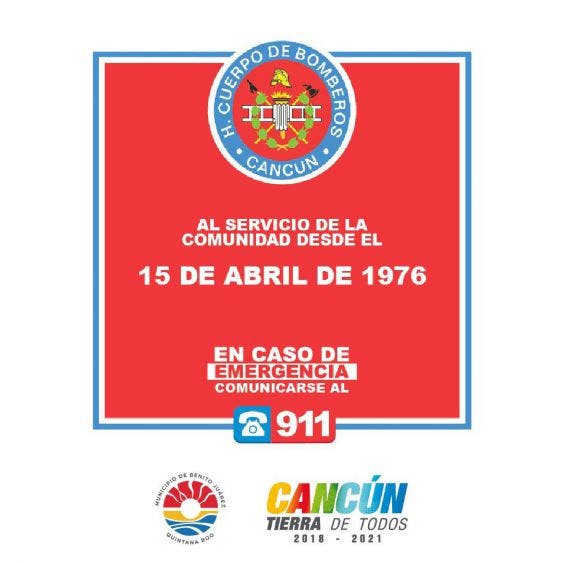Pide H. Cuerpo de Bomberos de Cancún hacer uso del 911.- A través de sus redes sociales, el Heroico Cuerpo de Bomberos de la ciudad de Cancún, solicita a la ciudadania hacer uso del número de emergencias 911, para agilizar las actuaciones de los tragahumos, tanto en situaciones de incendios, como de rescate urbano o las emergencias que la población pudiera requerir.