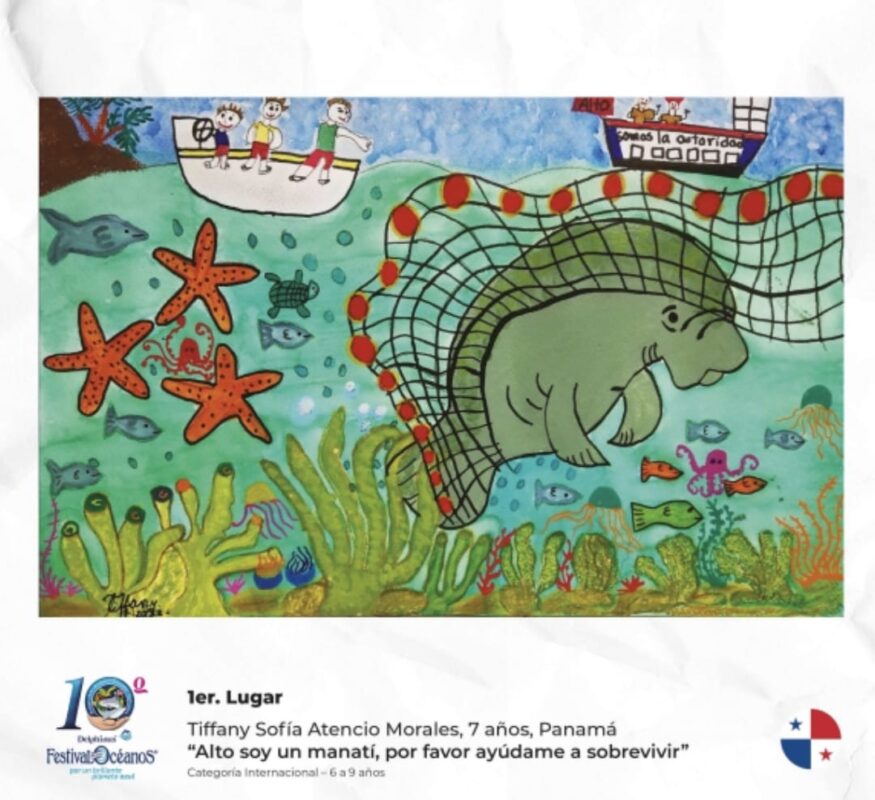 - 1er Lugar – Tiffany Sofía Atencio Morales, “Alto soy un manatí, por favor ayúdame a sobrevivir”, 7 años, Panamá