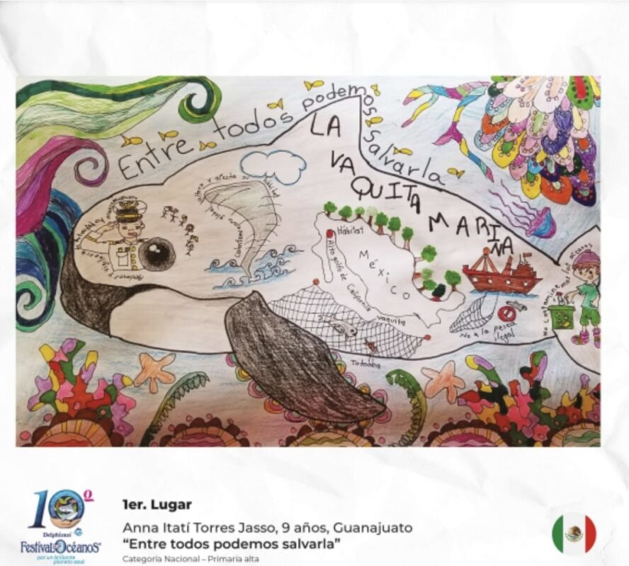 - 2do Lugar – Génesis Kin Angulo Herrera, “Súmate hoy, salvemos juntos a la vaquita marina”, 7 años, Tulum