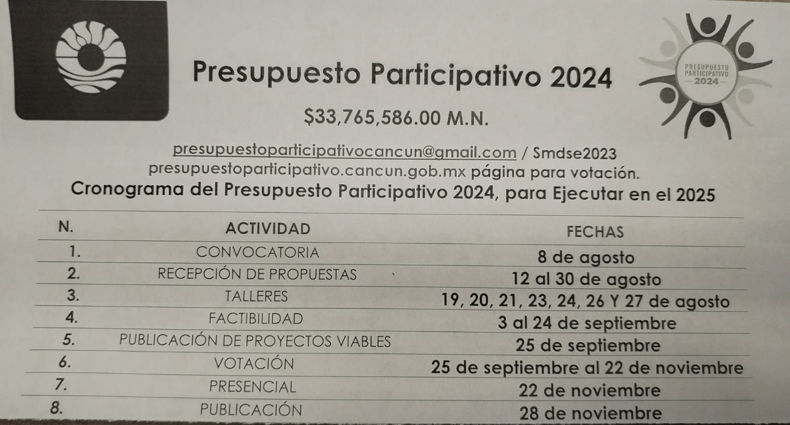 Recordemos que la convocatoria del Presupuesto Participativo Ciudadanos 2024 se hizo pública el pasado 8 de agosto, en donde ciudadanos de todo Benito Juárez pueden inscribir sus proyectos en las siete zonas en las que fue dividida la ciudad.