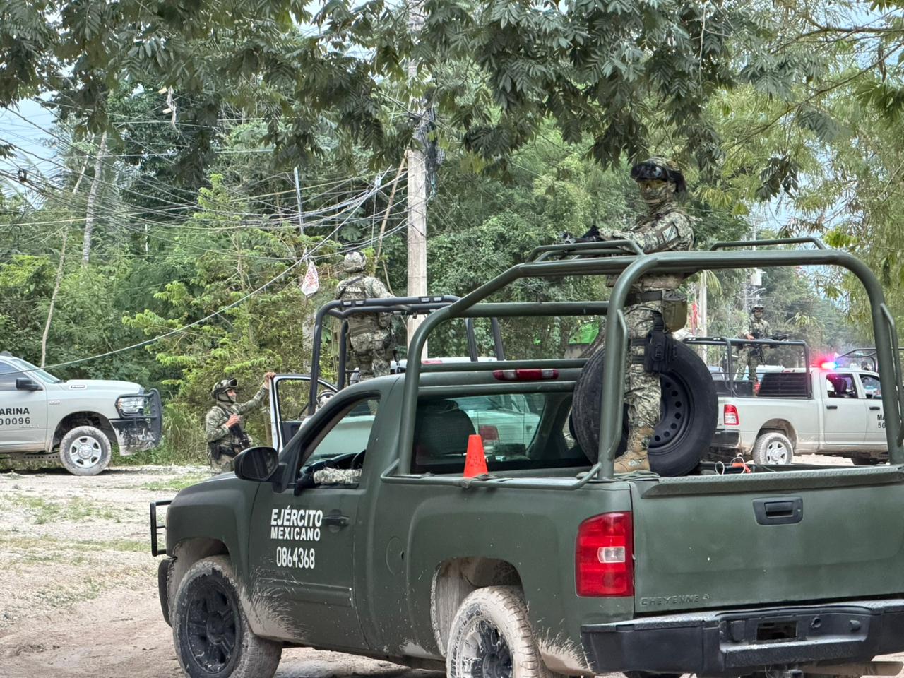 Ante la relevancia del hecho, varias unidades militares del Ejército Mexicano, la Secretaría de Marina (Semar) y de la Guardia Nacional se congregaron en la calle 6 de enero de este núcleo poblacional para atender el reporte.