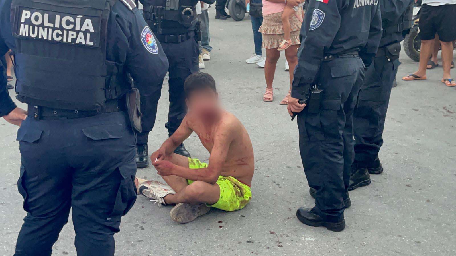 Cuando ya el ladronzuelo de motos había sido completamente sometido a golpes por el iracundo hombre víctima del robo, al lugar llegaron uniformados de la Policía Municipal de Cancún a bordo de varias patrullas.