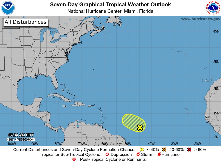 Pronóstico del clima en Quintana Roo para hoy domingo 20 de julio 2025; nublado con chubascos en Campeche, Yucatán y Quintana Roo.