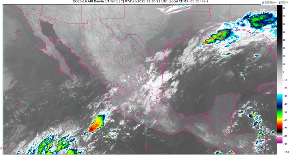 Asimismo, iniciará evento de “norte” de 20 a 30 km/h con rachas de 50 a 70 km/h y oleaje de 1.0 a 2.0 metros de altura en las costas de Tamaulipas y Veracruz (norte).
