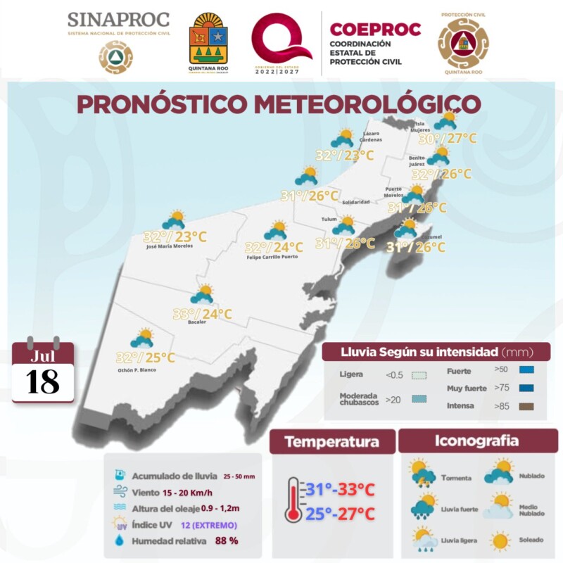 Pronóstico del clima en Quintana Roo para hoy jueves 18 de julio 2024
