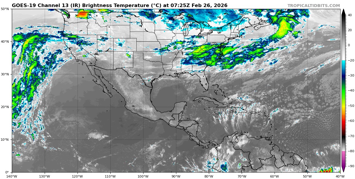 Pronóstico del clima en Quintana Roo para hoy jueves 26 de febrero 2026.- Para este día, una circulación anticiclónica en niveles medios y altos de la atmósfera sobre el noroeste y norte del país, mantendrá tiempo estable y ambiente caluroso a muy caluroso en dichas regiones; así como ambiente cálido a caluroso en el resto del territorio nacional; sin embargo, prevalecerá ambiente frío a muy frío durante la mañana y noche sobre los estados de la Mesa del Norte y Mesa Central.