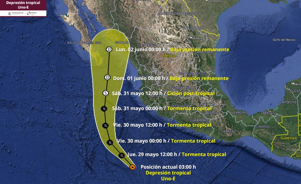 Pronóstico del clima en Quintana Roo para hoy jueves 29 de mayo 2025.- Para este día se prevé que el ciclón tropical Uno-E se intensifique mientras se desplaza paralelo a las costas de Michoacán, Colima y Jalisco, sus desprendimientos nubosos originarán lluvias con chubascos en el noroeste, occidente y sur del país, con lluvias puntuales muy fuertes en Guerrero y puntuales fuertes en Jalisco, Colima y Michoacán.