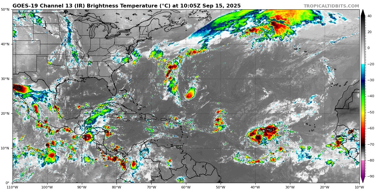 Pronóstico del clima en Quintana Roo para hoy lunes 15 de septiembre 2025; Cielo medio nublado con lluvias en Campeche, Yucatán y Quintana Roo.