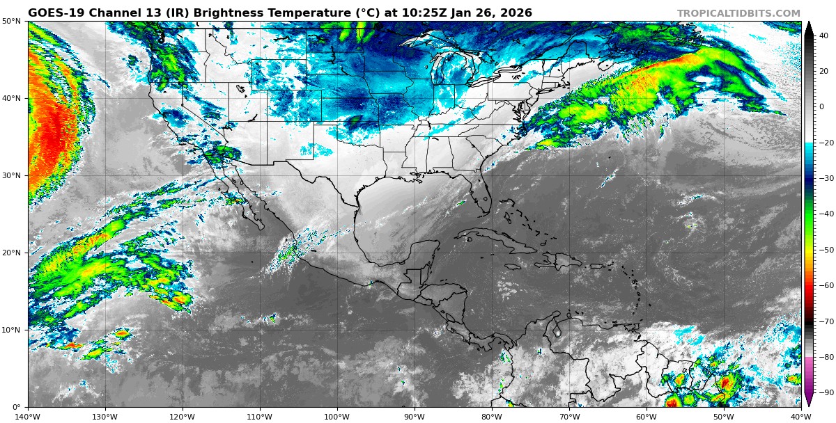 Pronóstico del clima en Quintana Roo para hoy lunes 26 de enero 2026.- Para este día, el frente frío número 30 se desplazará sobre el sur del Golfo de México, sureste del país y la Península de Yucatán, propiciará lluvias fuertes a muy fuertes en dichas regiones; pronosticándose lluvias puntuales intensas a torrenciales en Veracruz, Tabasco, Oaxaca y Chiapas.