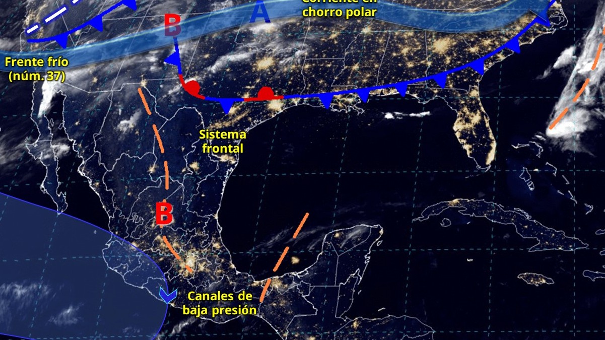 Por otra parte, el ingreso de humedad del océano Pacífico, golfo de México y mar Caribe, generarán lluvias y chubascos acompañados con descargas eléctricas en zonas de Hidalgo, Puebla, Veracruz, Oaxaca, Chiapas, Campeche y Quintana Roo.