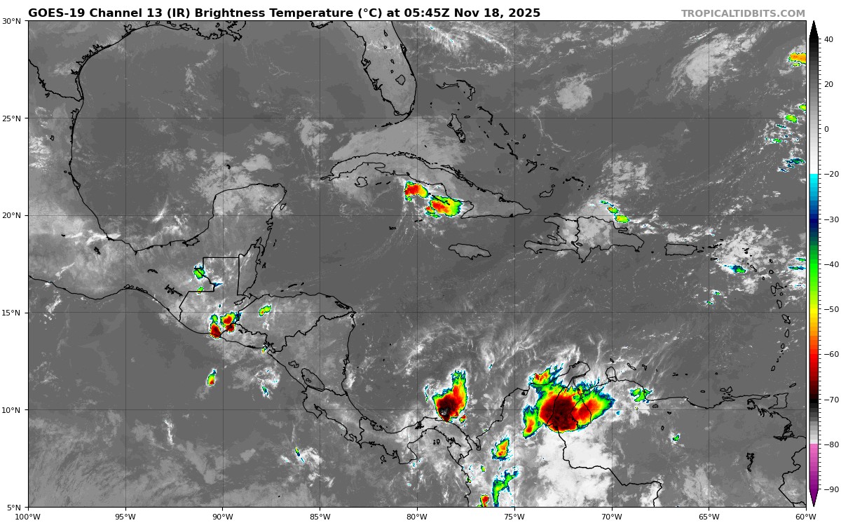 Pronóstico del clima en Quintana Roo para hoy martes 18 de noviembre 2025; cielo medio nublado con chubascos y posibles descargas eléctricas.