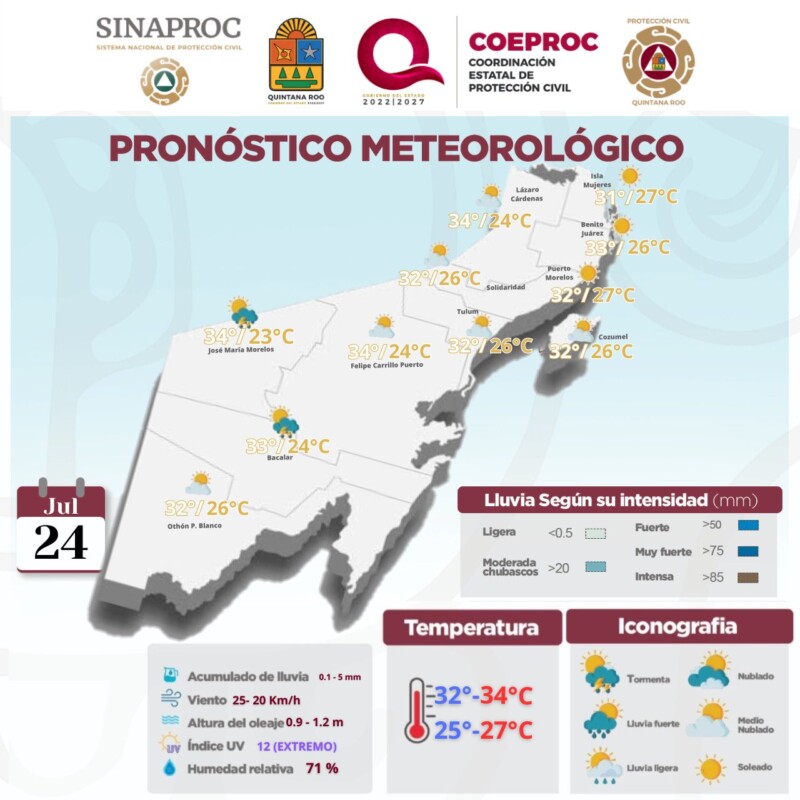 Pronóstico del clima en Quintana Roo para hoy miércoles 24 de julio 2024