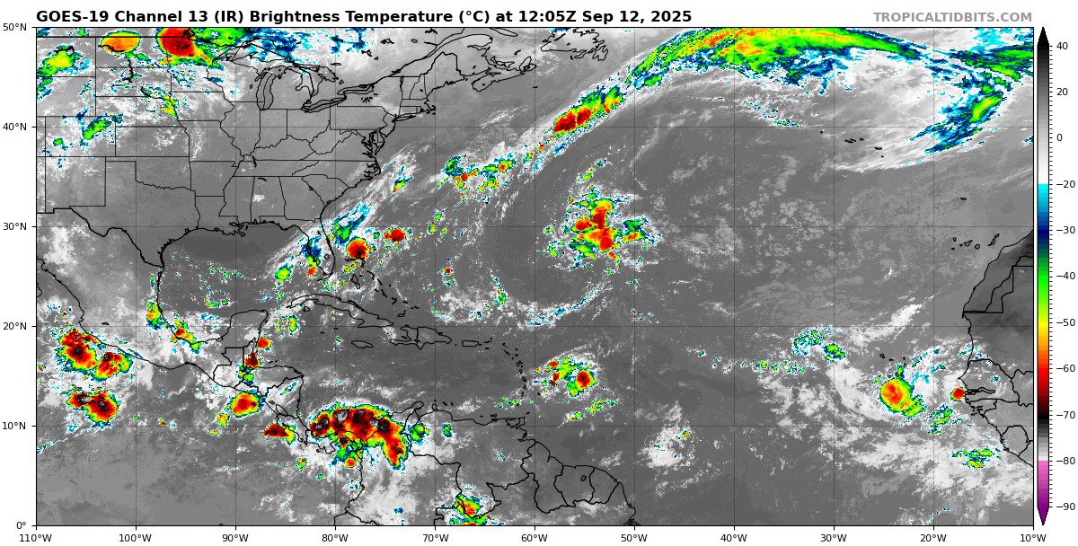 Pronóstico del clima en Quintana Roo para hoy viernes 12 de septiembre 2025.- Para este día, se prevé que la depresión tropical Trece-E, se intensifique a tormenta tropical, la cual se localizará frente a las costas de Guerrero y Michoacán, su circulación y desprendimientos nubosos, asociados con la vaguada monzónica que se mantendrá muy próxima a las costas del Pacífico Sur Mexicano, ocasionarán lluvias puntuales muy fuertes en Guerrero, Michoacán, Colima y Jalisco, además de rachas de viento de 50 a 70 km/h y oleaje de 2.5 a 3.5 metros de altura en las costas de Guerrero, Michoacán, Colima y Jalisco.
