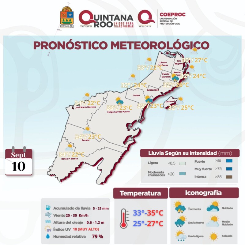 Pronóstico del clima para hoy domingo 10 de septiembre 2023 en Quintana Roo