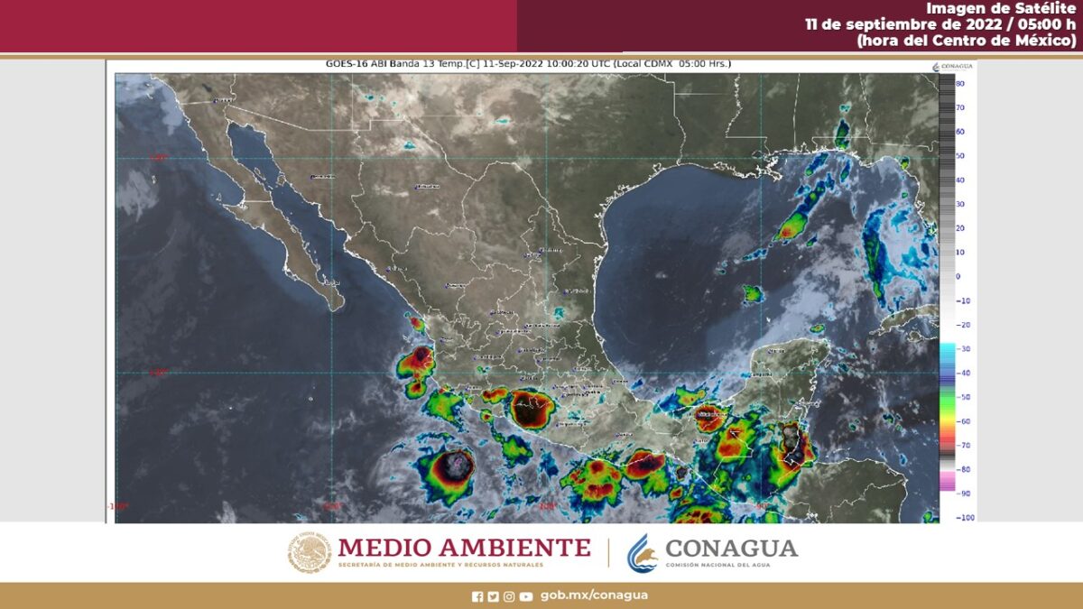 Pronóstico del clima para hoy domingo 11 de septiembre en Quintana Roo. Para hoy, un canal de baja presión extendido sobre el sureste de la República Mexicana y la Península de Yucatán, así como la proximidad de la vaguada monzónica en las costas del Pacífico Sur Mexicano, producirán lluvias puntuales torrenciales en zonas de Oaxaca, Chiapas y Tabasco; puntuales intensas en Guerrero, Veracruz, Campeche y Yucatán; puntuales muy fuertes en Puebla y Quintana Roo; así como puntuales fuertes en Tamaulipas. Otro canal de baja presión en el noroeste, occidente y centro de México, en combinación con el ingreso de humedad del océano Pacífico y con inestabilidad atmosférica superior ocasionarán lluvias puntuales fuertes en zonas de Nayarit, Jalisco, Colima, Michoacán, Morelos, Ciudad de México y Estado de México. Un frente frío se localizará muy cerca de la frontera norte de la República Mexicana y se prevé que su masa de aire frío escurra sobre la vertiente del Golfo de México, reforzando la probabilidad de lluvias en el noreste, oriente y sureste del país; además se pronostica un ligero descenso de las temperaturas mínimas sobre entidades del norte, noreste y oriente del territorio nacional. Finalmente, continuará el ambiente vespertino cálido en la mayor parte de los estados de la República Mexicana, con temperaturas máximas calurosas, superiores a 35 °C, en zonas de Baja California, Sonora, Sinaloa, Nuevo León y Tamaulipas.