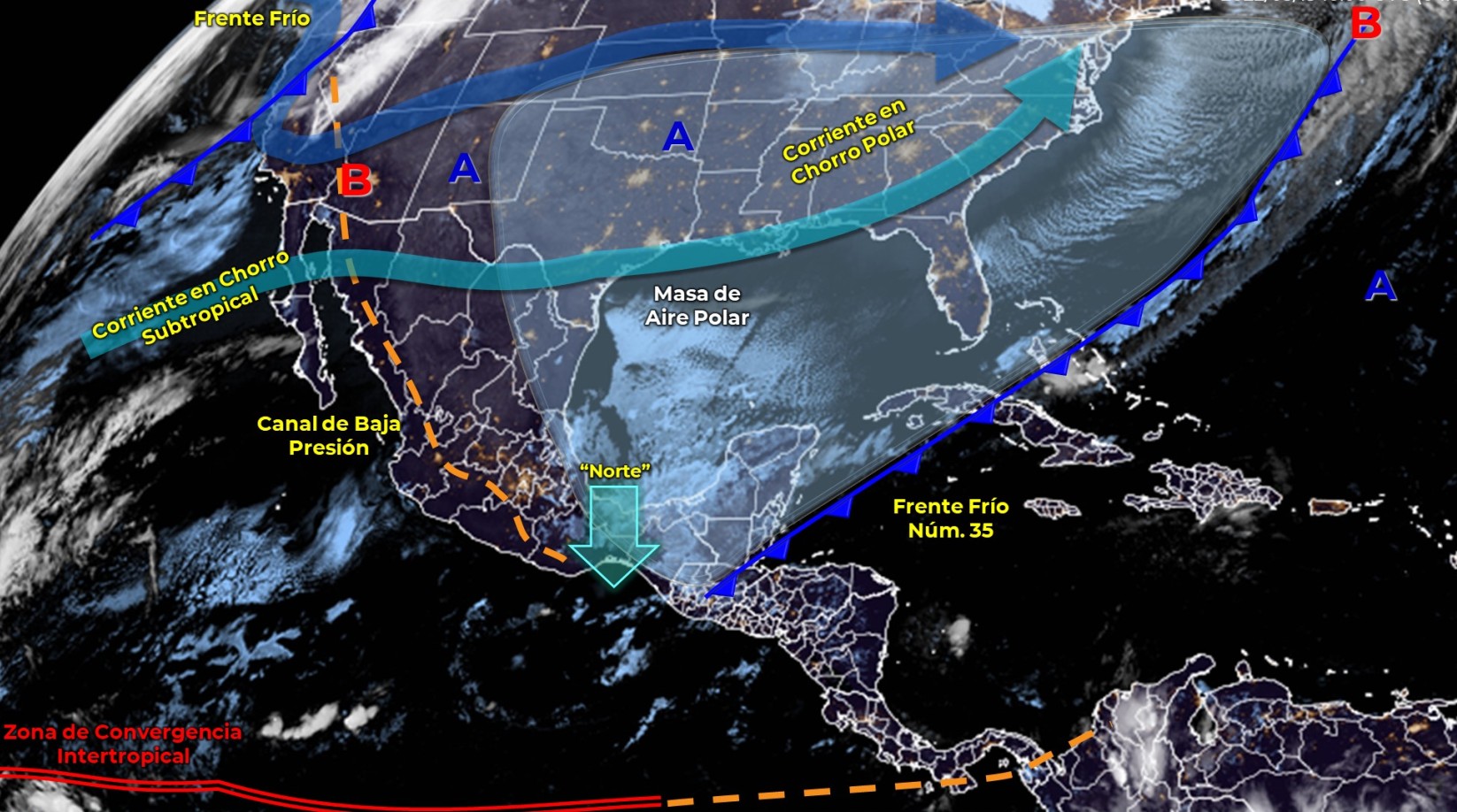 Así como evento de “Norte” muy fuerte a intenso sobre el Istmo, acompañado de oleaje elevado en el Golfo de Tehuantepec.
