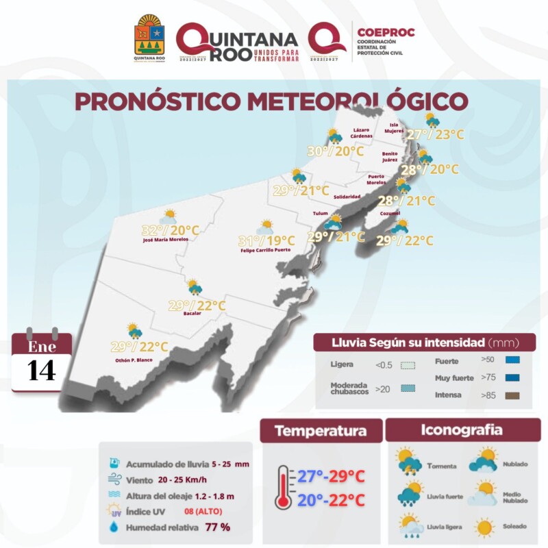 Pronóstico del clima para hoy domingo 14 de enero de 2024 en Quintana Roo