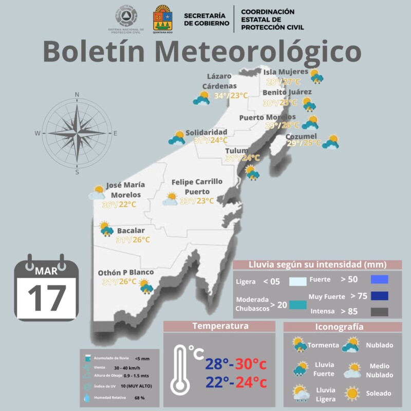 Pronóstico del clima para hoy domingo 17 de marzo 2024 en Quintana Roo