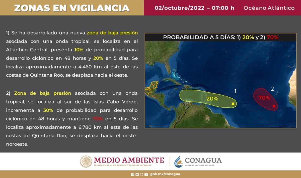 Pronóstico del clima para hoy domingo 2 de octubre en Quintana Roo. Para hoy el huracán «Orlene», de categoría 4 en la escala Saffir-Simpson, se desplazará cercano a las costas de Jalisco. Sus bandas nubosas ocasionarán lluvias intensas a torrenciales en zonas de Nayarit y Jalisco, muy fuertes a intensas en Colima y Sinaloa (sur), además de lluvias muy fuertes en Durango.