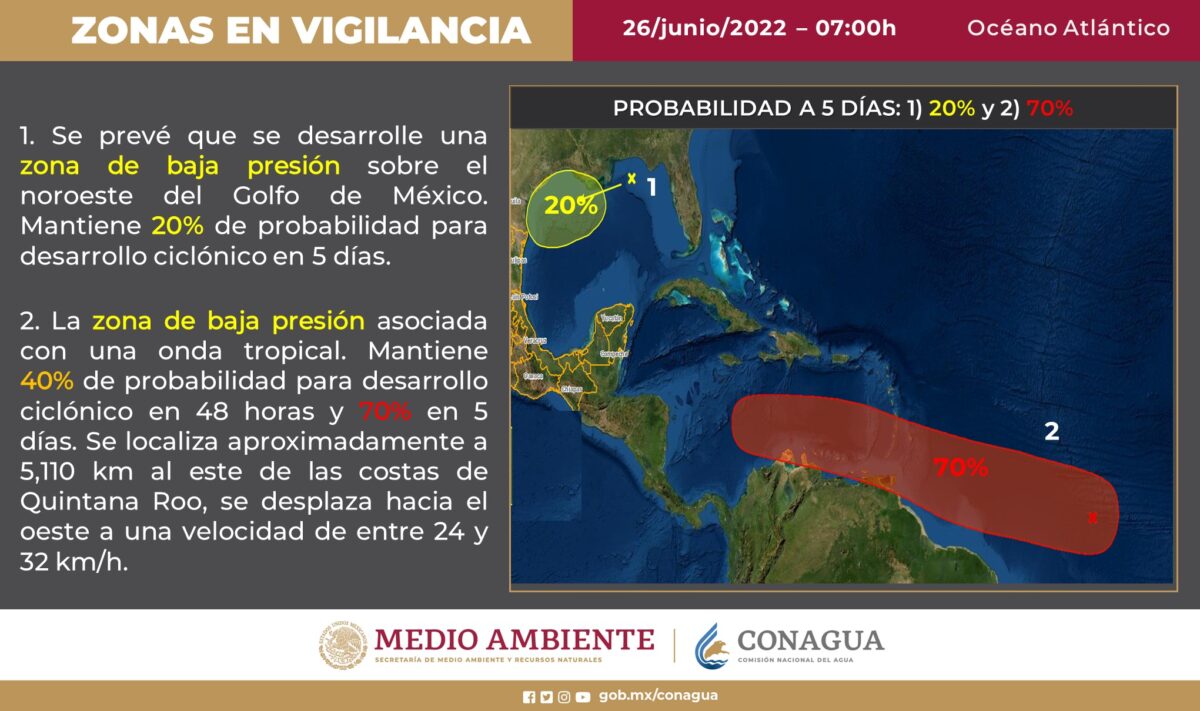 Pronóstico del clima para hoy domingo 26 de junio en Quintana Roo. Este día, la tormenta tropical “Celia” continuará alejándose del territorio mexicano, sin embargo, sus bandas nubosas ocasionarán lluvias puntuales fuertes, descargas eléctricas, rachas de viento y oleaje elevado de 1 a 2 metros en costas de Baja California Sur.