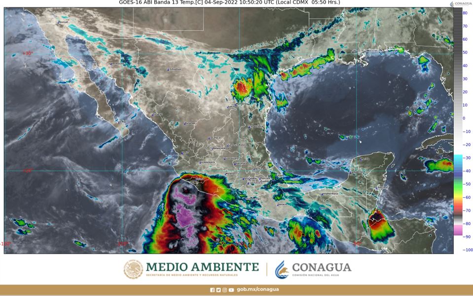 Un posible ciclón tropical se localizará al sur de las costas de Guerrero y Michoacán, continuará interactuando con un canal de baja presión sobre el occidente y centro del país, así como con la vaguada monzónica ubicada muy cerca de las costas del Pacífico Sur y Central Mexicano; este sistema originará lluvias puntuales torrenciales en zonas de Michoacán y Guerrero; puntuales intensas en Jalisco, Colima y Oaxaca; puntuales muy fuertes en Nayarit; puntuales fuertes en Zacatecas, Guanajuato, Querétaro, Estado de México, Tlaxcala y Morelos e intervalos de chubascos en la Ciudad de México.