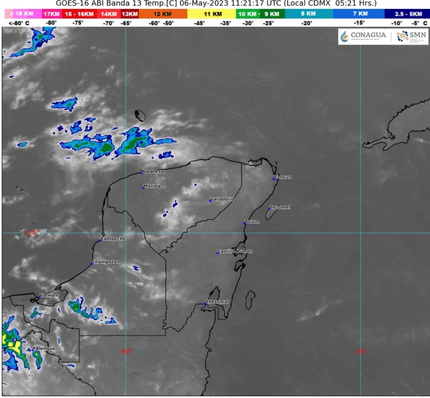 Pronóstico del clima para hoy domingo 7 de mayo 2023 en Quintana Roo. Este día, una línea seca sobre el norte de Coahuila, interaccionará con un canal de baja presión sobre el interior de la República Mexicana y con inestabilidad en niveles altos de la atmósfera, lo cual originará chubascos y lluvias puntuales fuertes, descargas eléctricas, rachas de viento y posible caída de granizo sobre estados del norte, noreste, centro, oriente y sur del país, incluido el Valle de México.