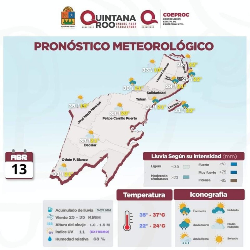 Pronóstico del clima para hoy jueves 13 de abril 2023 en Quintana Roo