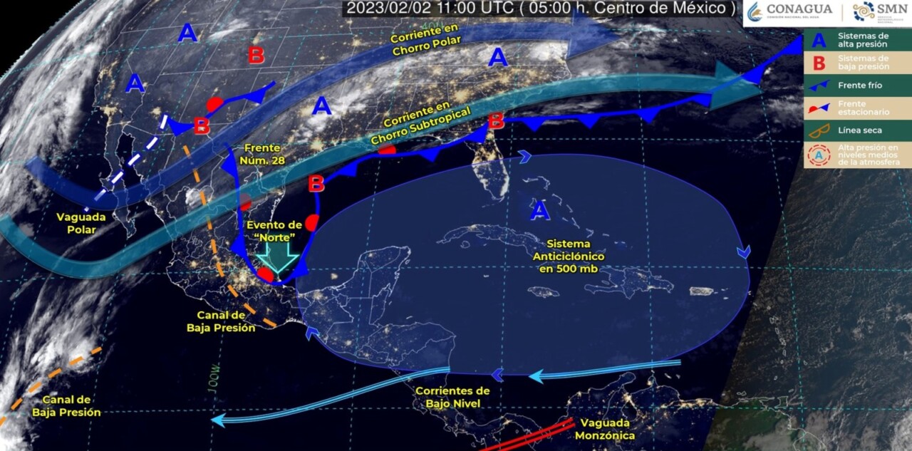 Pronóstico del clima para hoy jueves 2 de febrero en Quintana Roo. Este día, el frente frío número 28 será reforzado por una nueva masa de aire frío y recorrerá el oriente y sureste del territorio nacional, originando lluvias muy fuertes en Veracruz y Oaxaca, lluvias fuertes en Puebla y Chiapas, además de lluvias aisladas en Chihuahua, Coahuila, Nuevo León, Guanajuato y Quintana Roo.