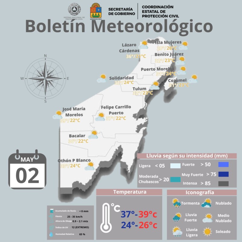 Pronóstico del clima para hoy jueves 2 de mayo de 2024 en Quintana Roo