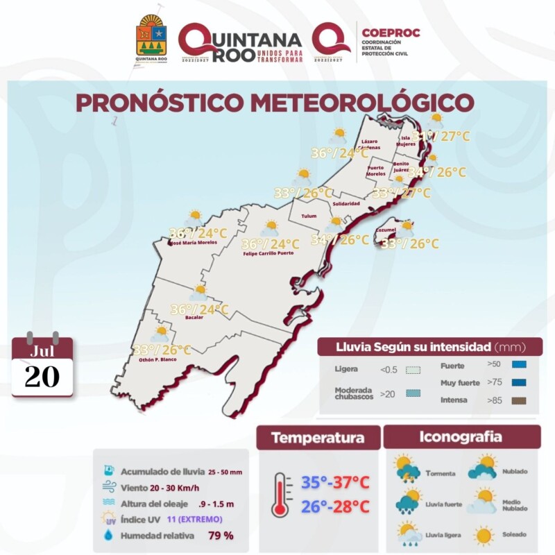 Pronóstico del clima para hoy jueves 20 de julio 2023 en Quintana Roo
