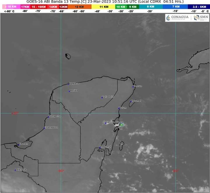 Pronóstico del clima para hoy jueves 23 de marzo 2023 en Quintana Roo. Para este día, la corriente en chorro polar y la vaguada polar, prevalecerán sobre el noroeste de México; mientras que el frente frío número 43, recorrerá el norte de la República Mexicana, e interaccionará con una línea seca sobre el noreste del país. Dichos sistemas generarán chubascos en Baja California, Sonora, Chihuahua y Coahuila.