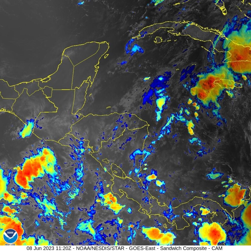 Pronóstico del clima para hoy jueves 8 de junio 2023 en Quintana Roo; cielo medio nublado a nublado con lluvias fuertes.