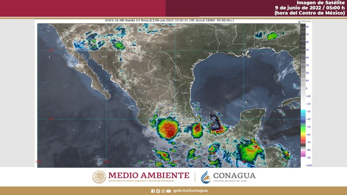 La interacción de un canal de baja presión que se extenderá desde el noroeste hasta el centro del territorio nacional, con el ingreso de humedad de ambos océanos y con inestabilidad en niveles altos de la atmósfera, producirá chubascos y lluvias fuertes acompañadas de descargas eléctricas y posible caída de granizo en el noroeste, occidente y centro del territorio nacional, además de lluvias puntuales fuertes a muy fuertes en el Valle de México.