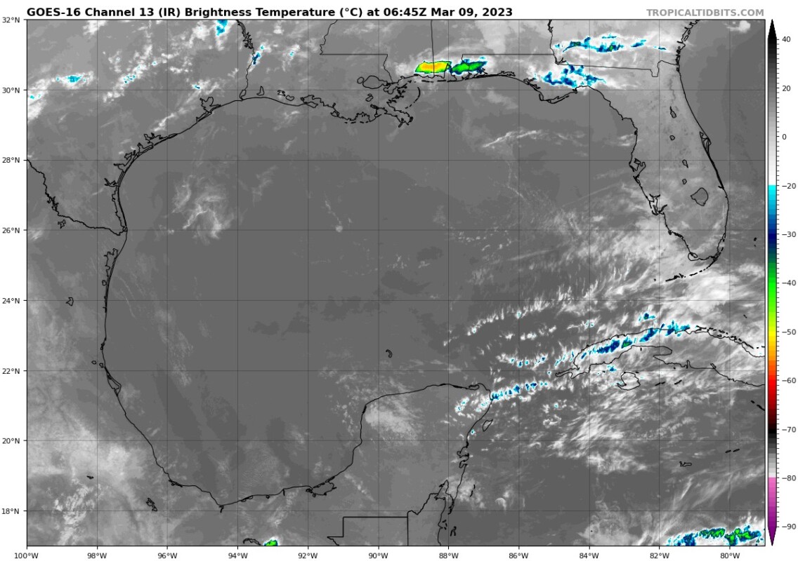 Golfo de México: Cielo medio nublado con lluvias aisladas en Tamaulipas y Veracruz. Sin lluvia en Tabasco. Por la mañana, ambiente fresco y muy caluroso por la tarde. Viento del sureste de 10 a 20 km/h con rachas de hasta 60 km/h, tolvaneras y posibles torbellinos en Tamaulipas (noroeste).