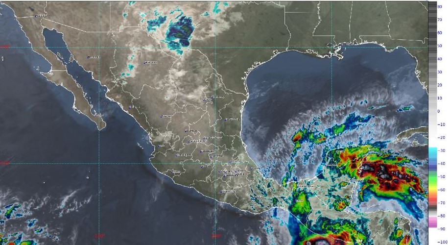 Golfo de México: Por la mañana, ambiente templado en la región, percibiéndose fresco a frío y con bancos de niebla en zonas montañosas. Cielo nublado con probabilidad de lluvias puntuales torrenciales en Veracruz y Tabasco, así como lluvias puntuales fuertes en Tamaulipas, dichas lluvias podrían originar incremento en los niveles de ríos y arroyos, y ocasionar deslaves e inundaciones en los estados mencionados. Ambiente vespertino templado a cálido en zonas costeras. Viento de componente norte con rachas de 60 a 70 km/h en costas de Veracruz y rachas de 50 a 60 km/h en Tamaulipas y Tabasco, así como oleaje de 1 a 3 metros de altura en la costa de Veracruz.