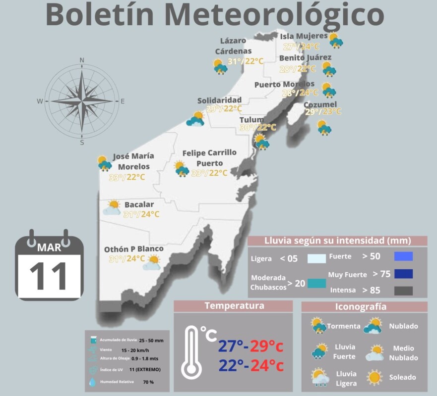Pronóstico del clima para hoy lunes 11 de marzo de 2024 en Quintana Roo