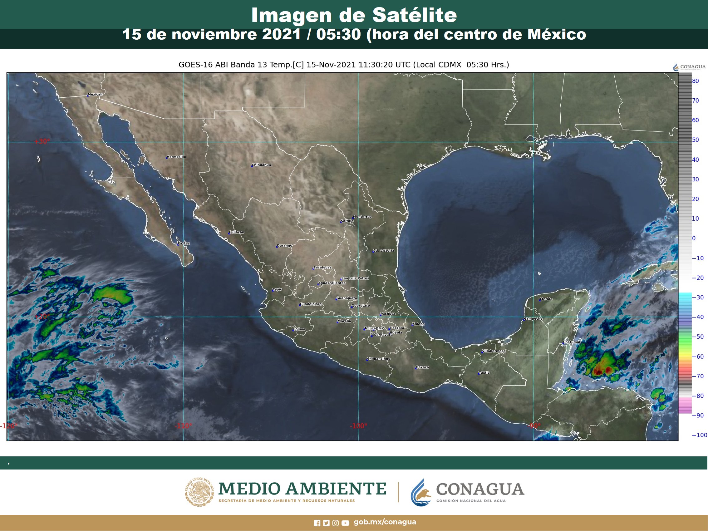 Valle de México: Se pronostica ambiente frío y heladas con bancos de niebla en zonas altas del Valle de México al amanecer, así como cielo parcialmente nublado en el transcurso del día, sin lluvia en la Ciudad de México y probabilidad de lluvias aisladas en el Estado de México. Viento del norte y noreste de 10 a 20 km/h con rachas de hasta 40 km/h.