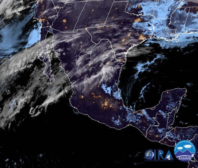 Pacífico Sur: Cielo parcialmente nublado durante el día, con lluvias aisladas en Oaxaca y Chiapas y bancos de niebla y/o neblina matutinas en zonas serranas. Ambiente caluroso durante el día. Viento de dirección variable de 10 a 25 km/h en la región y viento de componente norte con rachas que pudieran superar 50 km/h en el Istmo y Golfo de Tehuantepec.