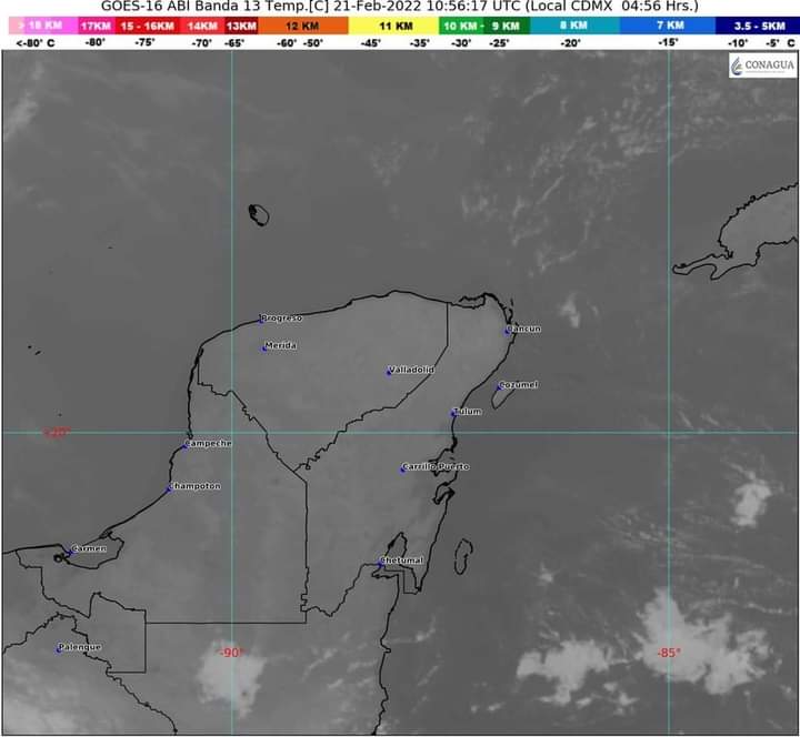 Pronóstico del clima para hoy lunes 21 de febrero en Quintana Roo. Para este día, una vaguada polar extendida en el noroeste del país y la corriente en chorro subtropical, originarán incremento de nublados con lluvias y chubascos dispersos en Baja California, Sonora y Chihuahua; intensas rachas de viento de 100 a 120 km/h con tolvaneras en Chihuahua y Durango; de 80 a 100 km/h en Sonora y de 60 a 80 km/h en Baja California, Coahuila, Zacatecas y el Golfo de California; así como ambiente frío a muy frío en el noroeste y la Mesa del Norte de México.