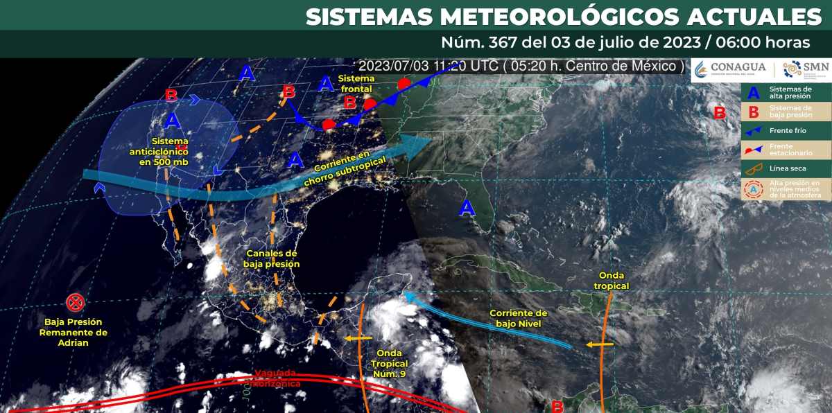 Pronóstico del clima para hoy lunes 3 de julio 2023 en Quintana Roo. Durante este día, la onda tropical número 9 recorrerá el sureste mexicano e interaccionará con un canal de baja presión que se ubicará en dicha región, ocasionarán lluvias puntuales intensas en los estados de Tabasco, Chiapas y Oaxaca, así como lluvias puntuales fuertes en la Península de Yucatán.