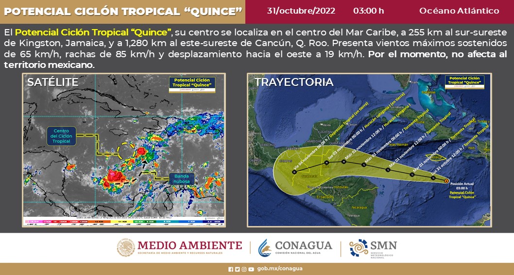 Pronóstico del clima para hoy lunes 31 de octubre en Quintana Roo. Este día, el frente frío número 6 adquirirá características cálidas en el oeste del Golfo de México y reforzará la entrada de humedad hacia el noreste del país, en interacción con un vórtice en niveles altos de la atmósfera y una vaguada polar, originarán lluvias fuertes a muy fuertes, descargas eléctricas, caída de granizo, rachas de viento de 50 a 70 km/h y posible formación de torbellinos y tornados en zonas de Coahuila, Nuevo León y Tamaulipas.