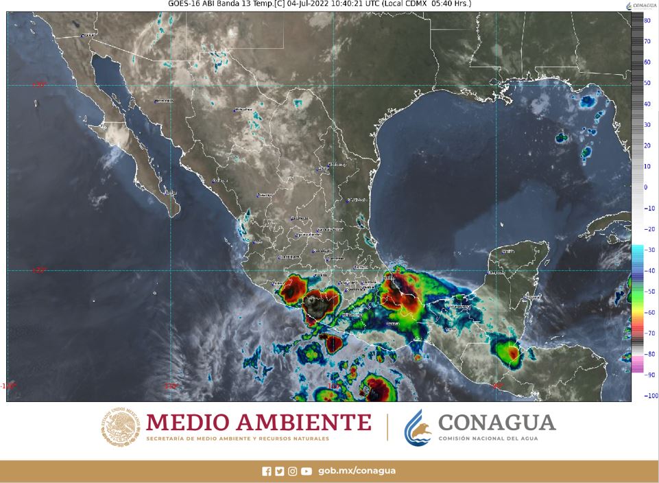 Asimismo, se prevén rachas de viento de 70 a 90 km/h y oleaje de 3 a 5 metros de altura en las costas de Oaxaca y Guerrero.
