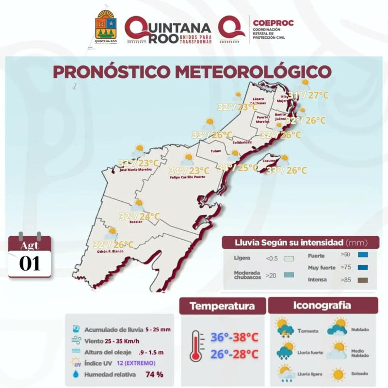 Pronóstico del clima para hoy martes 1 de agosto 2023 en Quintana Roo