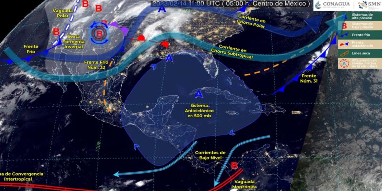 Pronóstico del clima para hoy martes 14 de febrero en Quintana Roo. Este día, el frente frío número 32 se desplazará sobre el norte y noreste del territorio mexicano y, en interacción con la corriente en chorro subtropical, ocasionará rachas fuertes de viento en dichas regiones.