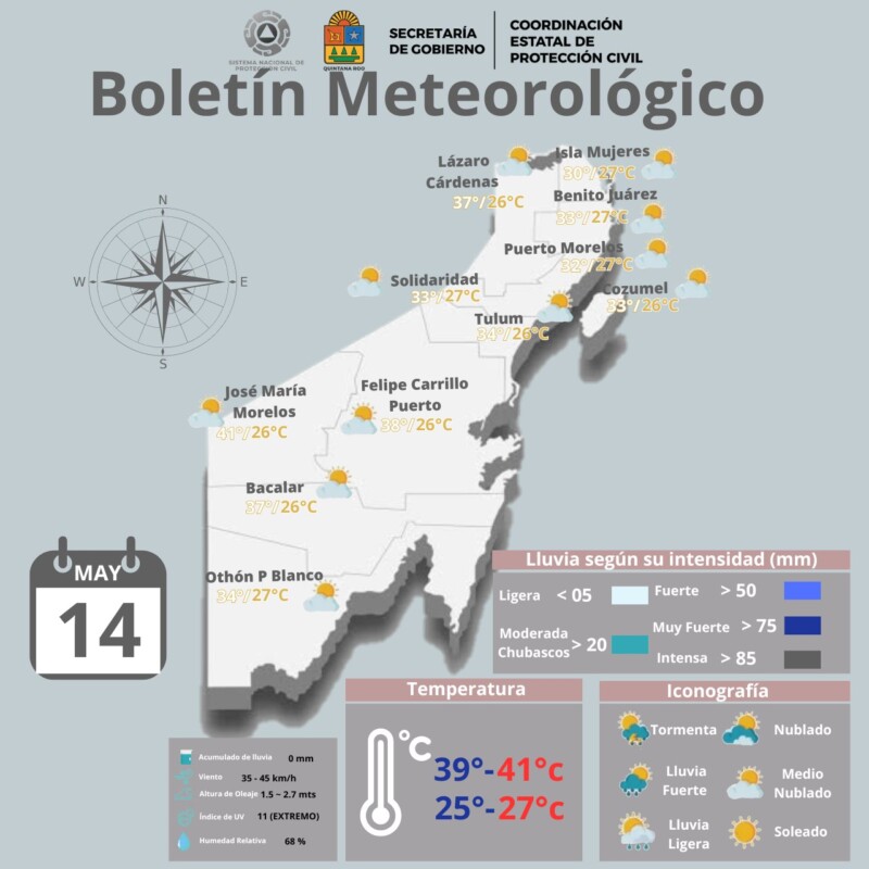Pronósticodel clima para hoy martes 14 de mayo 2024 en Quintana Roo
