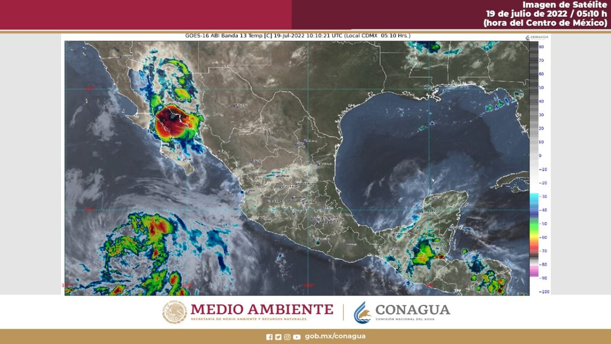 Por su parte, la onda tropical número 13 ubicada sobre el Istmo y Golfo de Tehuantepec, se desplazará gradualmente hacia el oeste y generará lluvias puntuales muy fuertes en Oaxaca, fuertes en Hidalgo, Tlaxcala, Puebla y el sur de Veracruz.